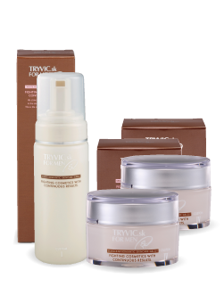 男性用泡洗顔で優しく毛穴の汚れを落とし、イキイキ肌を目指す化粧水で肌をキリッと締める。その後、浸透性が期待できる、海洋性コラーゲンを贅沢に配合した男性用美容ゲルで、肌に真から栄養を注入。若々しくキレのある最強の肌を目指します。