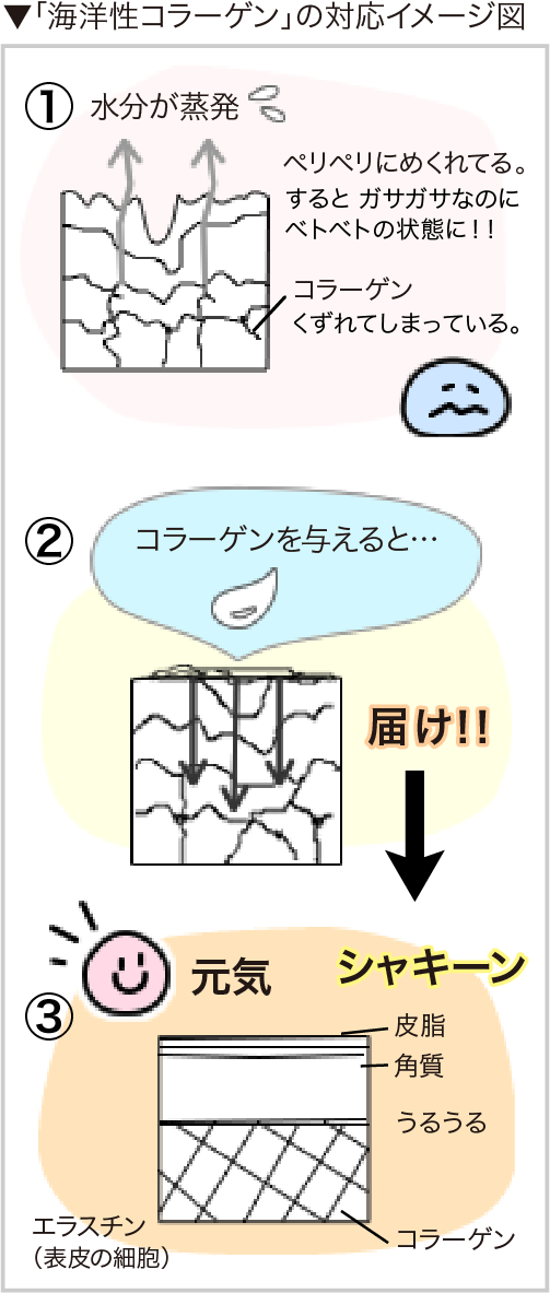 そこで、大切なコラーゲンを摂り入れようと思っても・・・男性の皮膚は女性よりも圧倒的に硬いので、大切な内部に届ける事が難しいのです。(疲れている男性の肌に一番必要なのが、コラーゲンなのに!)そこで注目したのが・・・