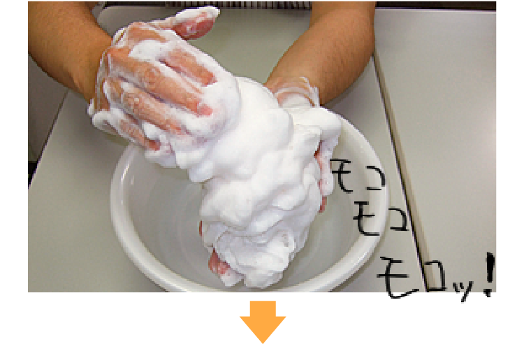 耳元でシュワシュワ、プチプチ…と、まるで泡がニオイを弾き飛ばしてくれているかのような音が聞こえてきますので、しばらくの間、泡のイキイキと働く音をお楽しみ下さい♪あとは、これを流して、二オイも汚れもキレイさっぱり♪