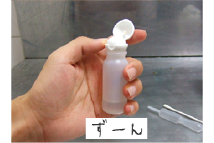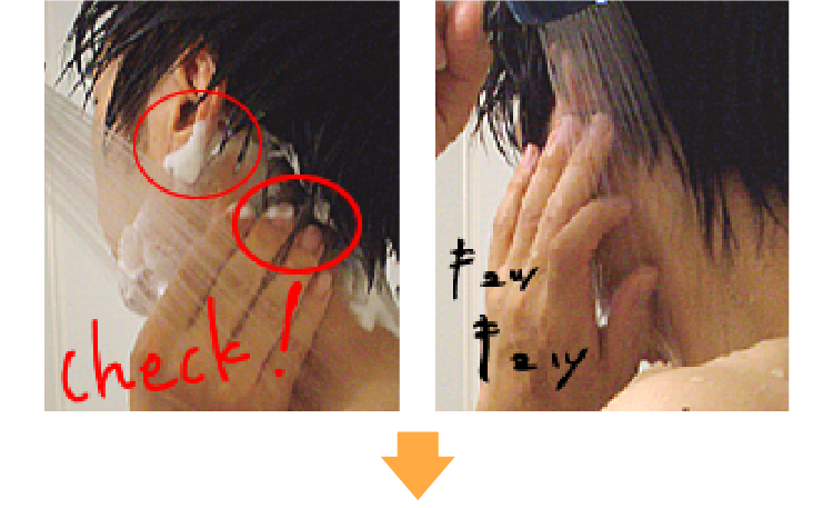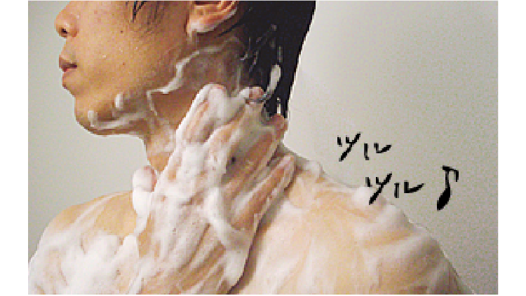 ニオイが気になる箇所(耳のウラ・わきなど)に泡をつけ1分〜2分ほどキープ。