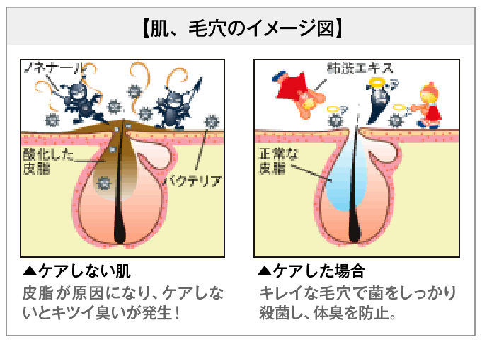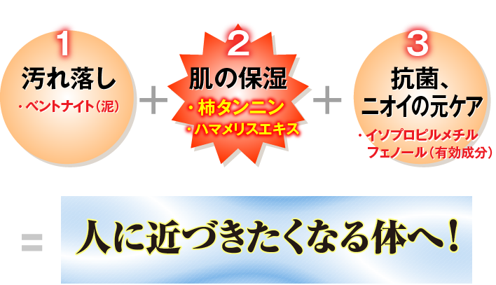 菌やバクテリアの繁殖を抑える有効成分。気になる体臭の原因を元から断ち、サッパリな体を目指します。